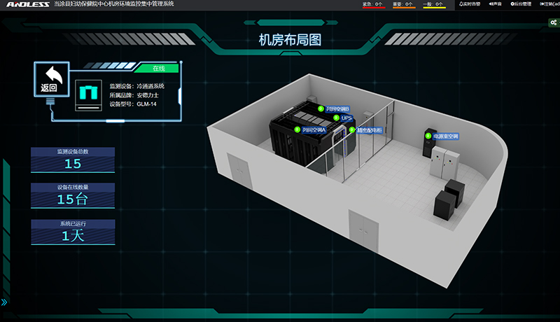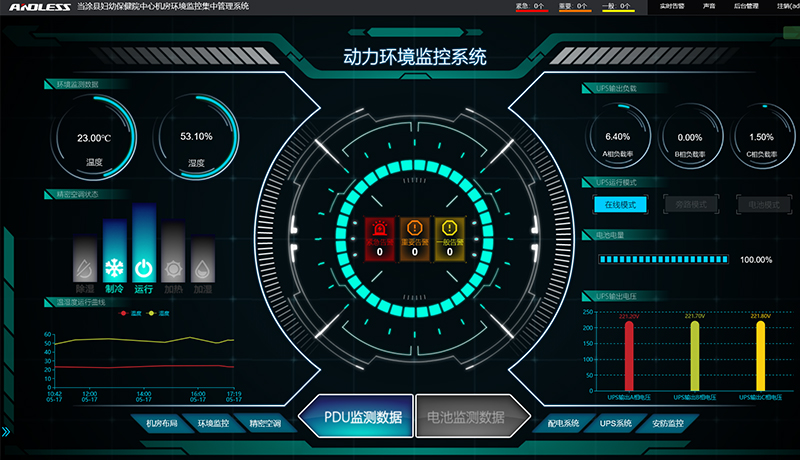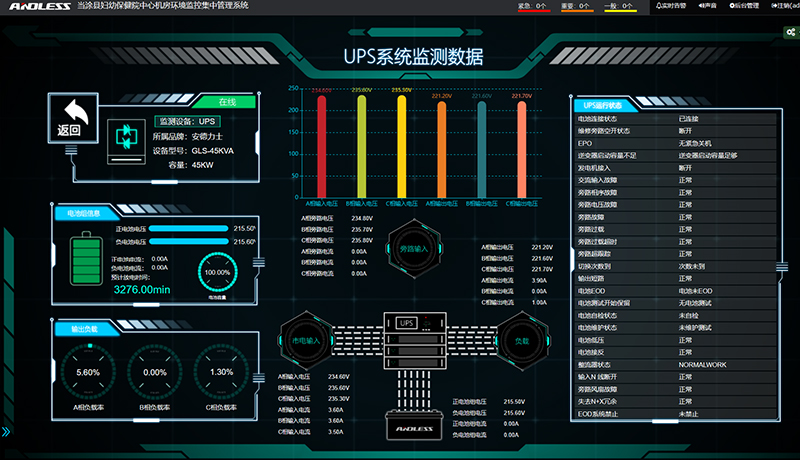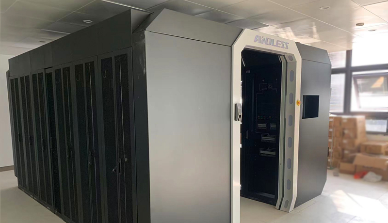 該機房前期已完成其微模塊通道的安裝及UPS不間斷電源系統設備的提供:通道內使用安德力士品牌模塊化UPS、強電井使用高頻安德力士品牌容量10KVA UPS主機10臺、并配套鉛酸蓄電池及電池箱等。
