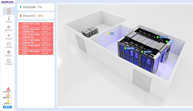 本次機(jī)房項(xiàng)目為其提供的為雙排微模塊機(jī)房設(shè)備,含有精密空調(diào)系統(tǒng)、動力環(huán)境監(jiān)控系統(tǒng)、配電系統(tǒng)、機(jī)柜、聲光報警等系統(tǒng)。