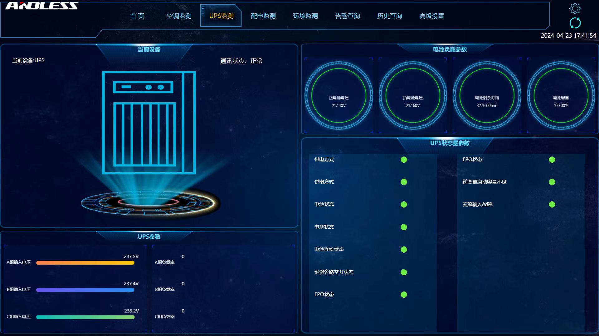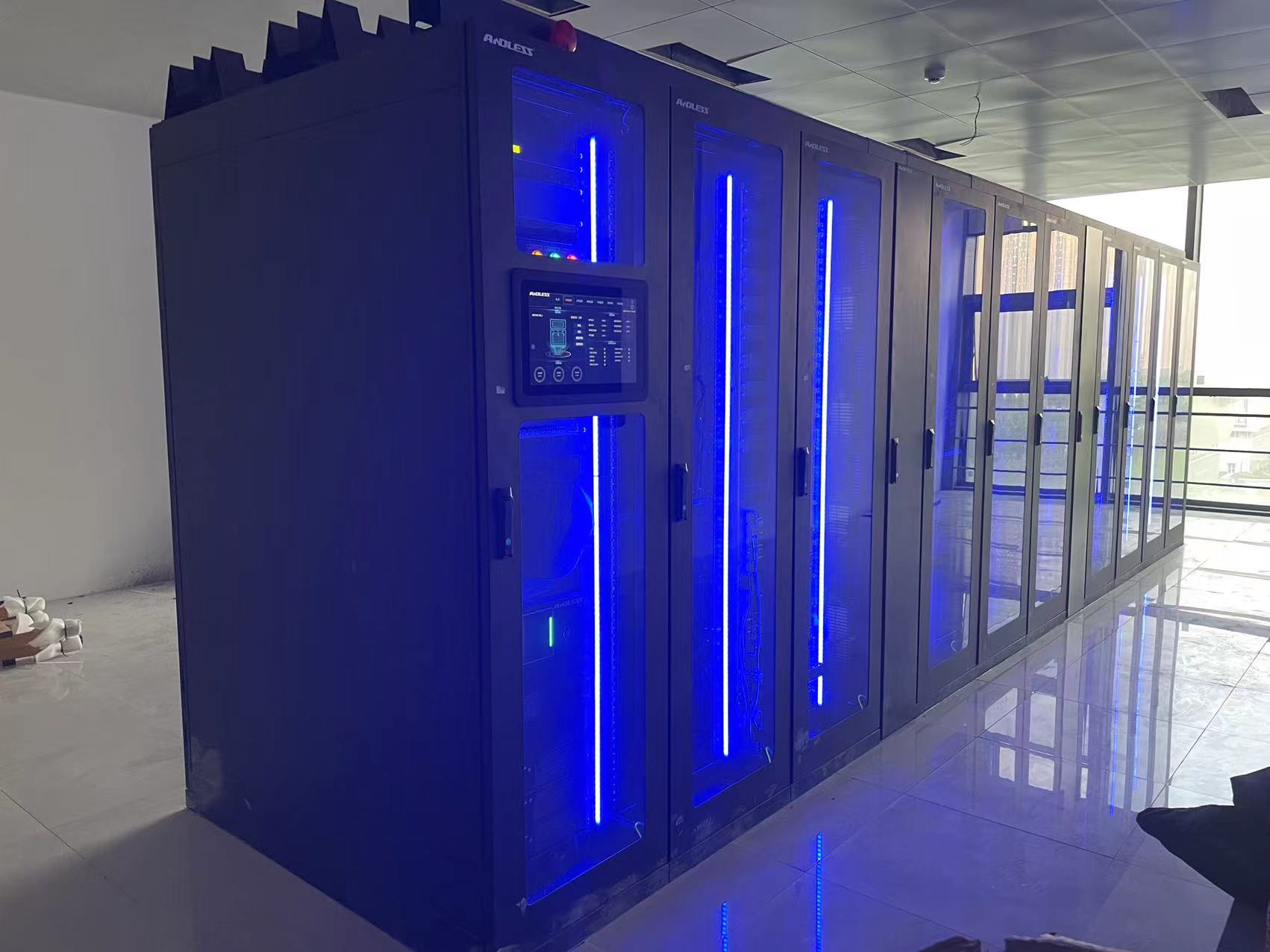 化工工程合肥設計中心用房項目信息化建設采用微模塊機房建設,為保證系統的穩定供電,避免停電等突發事件對業務的影響,引入UPS不間斷電源系統是至關重要的。信息機房采用安德力士GLV單排微模塊系統1套,系統使用行間空調2臺。單排微模塊機柜的制冷模塊,采用靠近熱源的列間空調,和標準機柜一體化設計。柜體采用全封閉設計,冷熱通道分離;空調采用后進風,前出風90°左回風的方式,送風距離短、循環風阻小,大大提高制冷效率,實現高密度制冷。