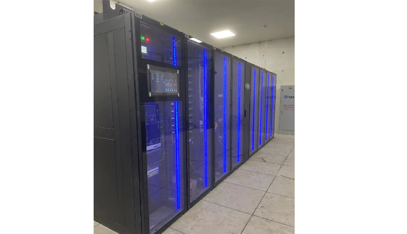江蘇省鹽城天森機器人項目信息化建設采用微模塊機房建設,為保證系統的穩定供電,避免停電等突發事件對業務的影響,引入UPS不間斷電源系統是至關重要的。單排微模塊機柜的制冷模塊,采用靠近熱源的列間空調,和標準機柜一體化設計。柜體采用全封閉設計,冷熱通道分離;空調采用后進風,前出風90°左回風的方式,送風距離短、循環風阻小,大大提高制冷效率,實現高密度制冷。
